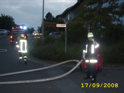 Am 13.09.2008 um ca. 15:30 Uhr heutlen die Sirenen in Wüstenzell und Dertingen. Sie riefen die Feuerwehrkameraden der beiden Wehren zur alljährlichen Übung. Angenommenes Einsatzszenario war ein Brand im Untergeschoss der Mandelberg-Halle in Dertingen mit mehreren vermissten Personen. Bei dieser Übung hatten wir erstmals das zweite Fahrzeug, unseren VW-Bus (Rufname: Florian Wüstenzell 14/1), im Einsatz.