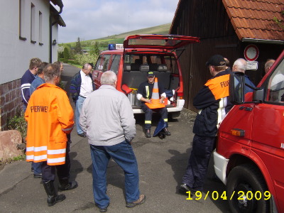 Am 19.04.2009 hatten wir das Vergnügen den Kameraden der Freiwilligen Feuerwehr Dertingen etwas über das Thema "Verhalten bei Verkehrsunfällen" zu erzählen. 19 Kameraden waren zur Übung erschienen (traumhafte Quote im Vergleich zu unseren Übungen). Die Übung war in zwei Schwerpunkte aufgeteilt: