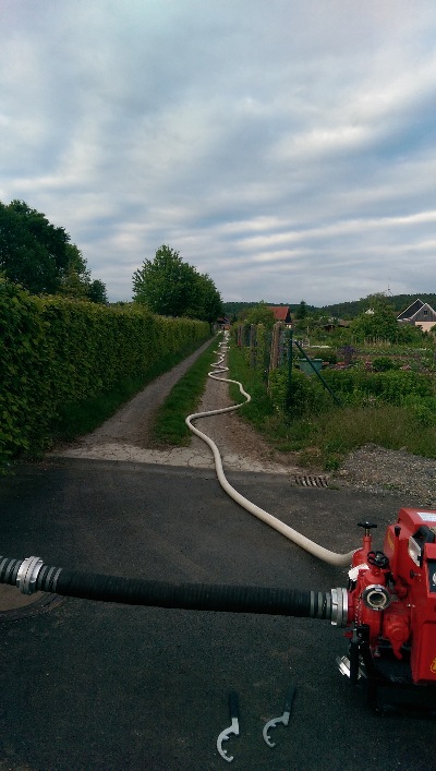 Angesaugt haben wir das Wasser aus dem Aalbach. Ansaughöhe ca. 3,5 Meter.